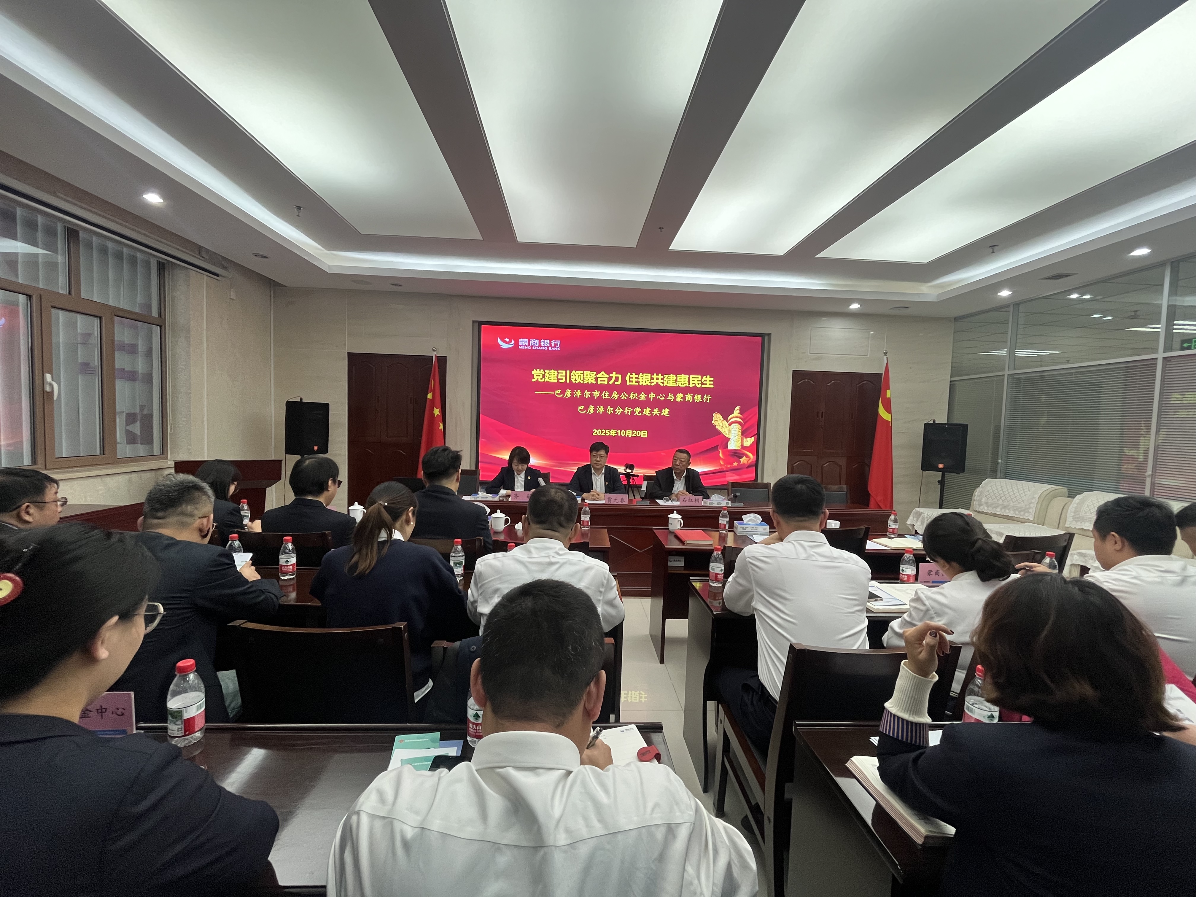 会议伊始,蒙商银行巴彦淖尔分行行领导主持开场,介绍活动背景与目的,强调本次党建共建是双方深化合作、服务民生的重要举措,随后邀请公积金中心业务骨干开展业务宣讲。